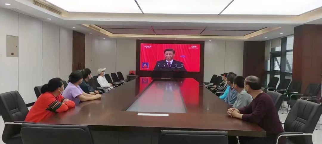 青山江灘運維中心組織黨員收看黨的二十大開幕式。
