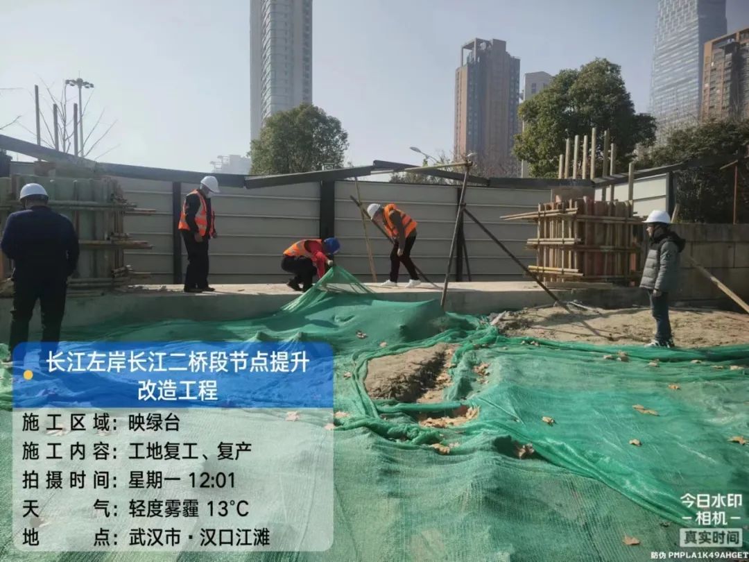 ? ? ? ?截至1月30日,長江二橋節點提升改造工程已完成打圍和臨建建設、管線及苗木調查、映綠臺擋土墻、新建閘口底板等工作。