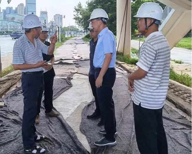 ? ?6月28日上午,集團黨委委員、副總經(jīng)理李暉深入南岸嘴節(jié)點提升改造工程項目現(xiàn)場進行調(diào)研,了解項目前期進度及困難,對下一階段重點工作進行指導部署。在聽取了項目負責人對南岸嘴項目的進展情況匯報后,李暉提出三點要求,一要抓好現(xiàn)場安全、文明施工工作;二要抓好防汛工作,平安度過汛期;三要抓好成本管理和質量管理,做到精細化施工,爭取把南岸嘴項目打造成精品工程,成為武漢的一張“名片”和“地標”。