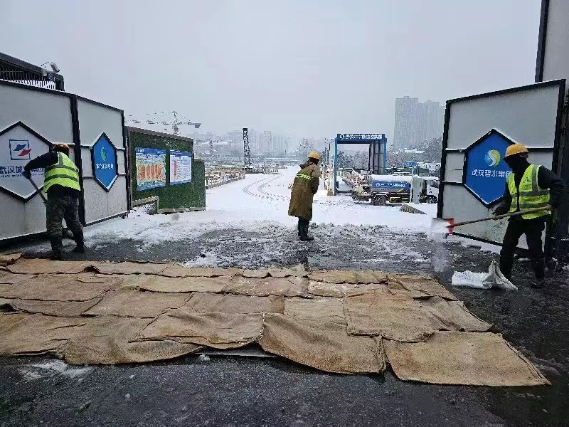 ? ? ? ?巡司河綜合治理二期項目投入除雪作業人員29人,鋪設麻袋150件,除雪鏟車一臺,除雪鹽15袋,保障白沙洲大道及南湖部分路段行車安全;巡司河綜合治理一期項目突擊隊51人,頂風冒雪,全力清除項目施工區域及武梁路面上的積雪;巡司河街污水管道及跨復興路箱涵工程總承包(EPC)項目齊心協力,分工明確,高效配合,對現場電纜線及水管已進行防寒保護,聯合社區對工地周邊道路除雪去冰;青山濕地二期項目部組織18人突擊隊、鏟車1臺,拋撒工業鹽0.5噸,草墊麻袋10捆,為青山汽渡碼頭道路、輪渡碼頭行人通道及周邊住戶掃除積雪;南湖生態活水項目補水通道工程突擊隊20人,拋灑2噸融雪劑,對項目內部道路及周邊近2公里道路進行融雪除冰。