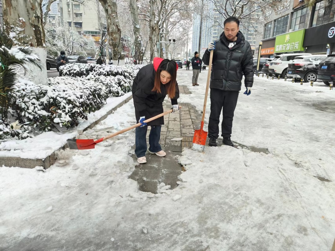 ? ? ? ?為應對低溫雨雪冰凍天氣,武碧綜發公司全員行動迅速成立掃雪隊伍,對公司各項目小區道路和周邊道路的積雪、覆冰進行清掃,并及時拋灑融雪劑、鋪設麻袋、草墊等防滑物資,確保各出入口及通行區域無積雪結冰,全力保障居民的出行安全。